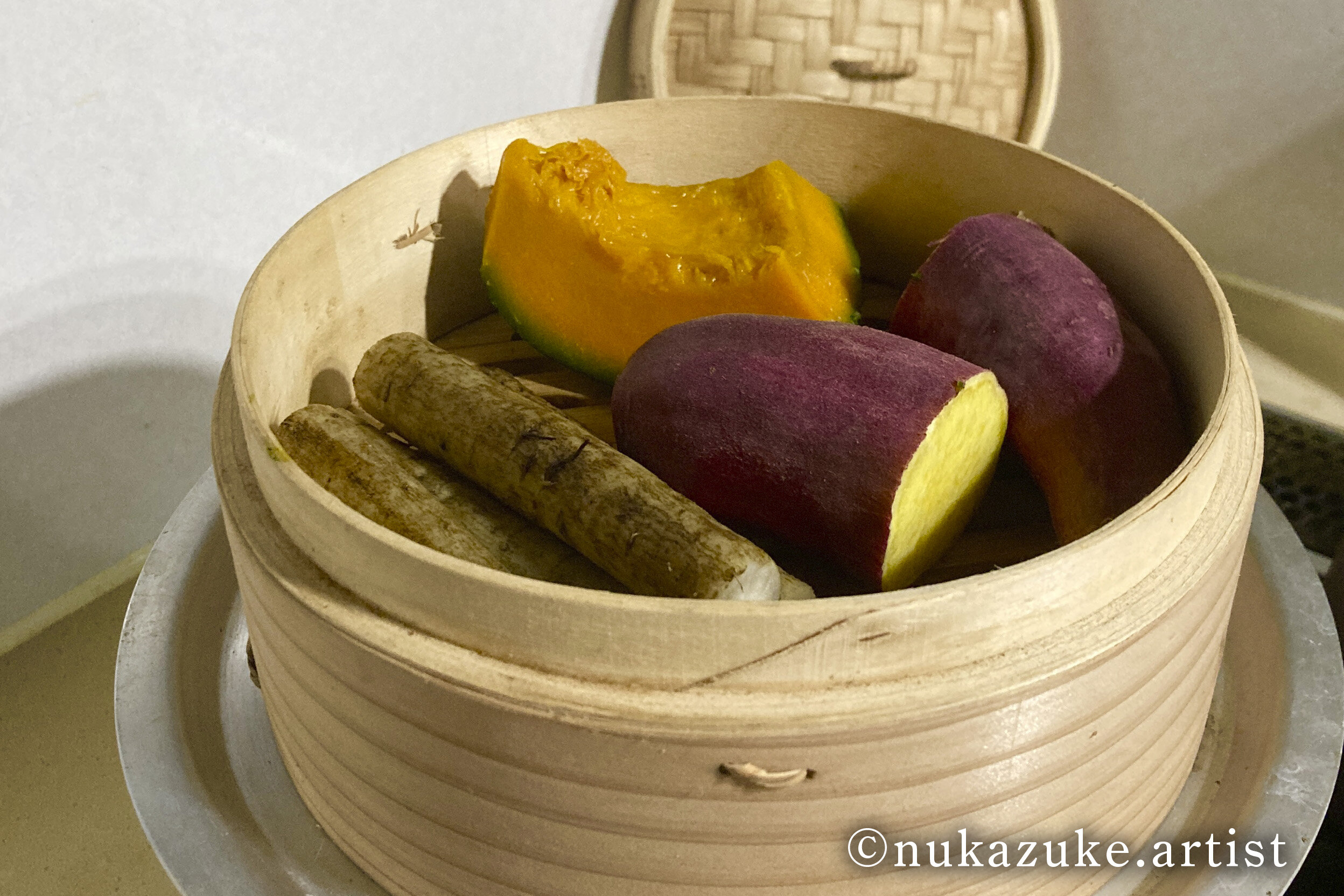 ごぼうやかぼちゃ、さつまいもなど生では食べられないものは蒸すか茹でた後、冷ましてから漬けます。