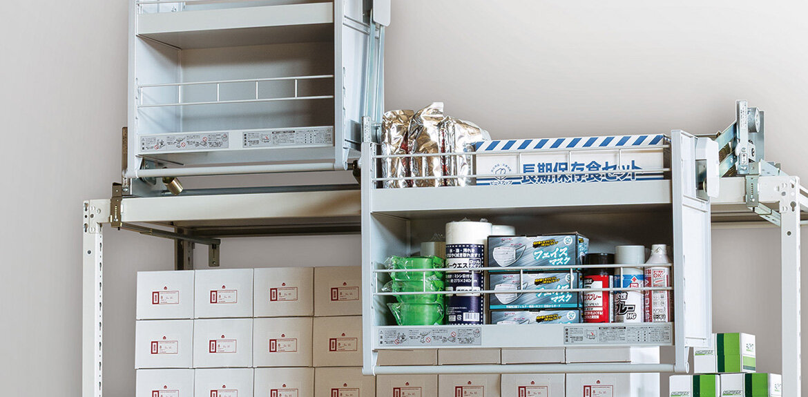 踏み台不要で作業効率が向上し、防災・備蓄品の整理にも最適。安全に収納力アップを実現します。