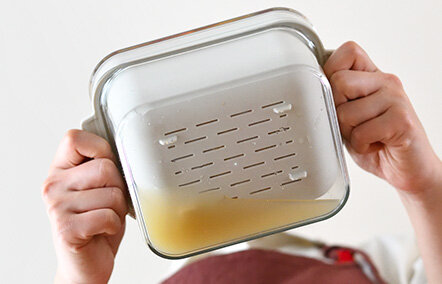 内容器の底に水抜きスリット穴が付いているから自然と水抜きができます。