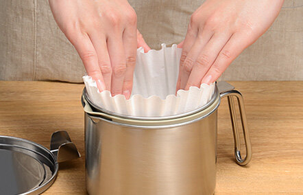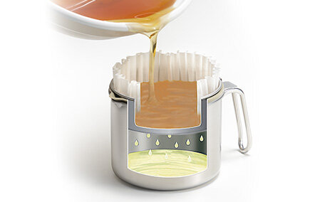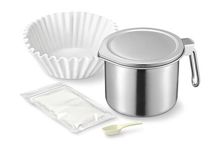 付属の”ろ過パウダー”が油自体をきれいにします。