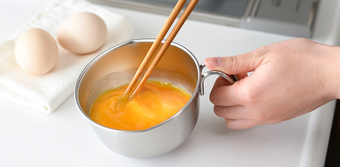 量ってそのまま混ぜられる、卵溶きに便利なミニボウル